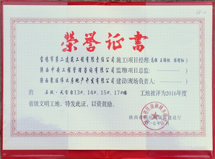 2017年度省級文明工地(石鼓﹒天璽臺)