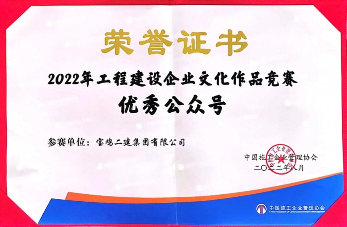 寶雞二建公眾號(hào)榮獲“全國工程建設(shè)行業(yè)優(yōu)秀公眾號(hào)”