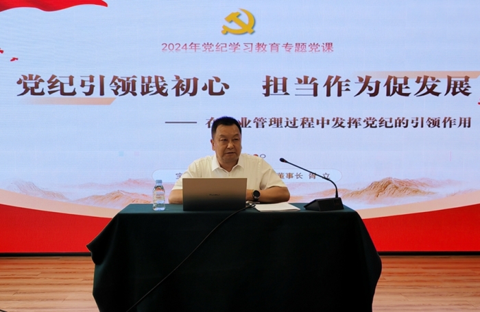 黨委書記、董事長胥立講授題為《黨紀(jì)引領(lǐng)踐初心 擔(dān)當(dāng)作為促發(fā)展》的黨紀(jì)學(xué)習(xí)教育專題黨課。他從認(rèn)識(shí)黨紀(jì)的重要性、深學(xué)細(xì)悟“六項(xiàng)紀(jì)律”、加強(qiáng)黨紀(jì)建設(shè)的要求、在管理中貫徹黨紀(jì)的思考和實(shí)踐四個(gè)方面進(jìn)行了講解,并與現(xiàn)場(chǎng)人員進(jìn)行了互動(dòng)交流。