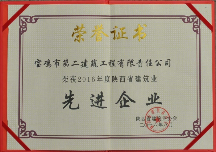 2016年建筑業(yè)先進企業(yè)