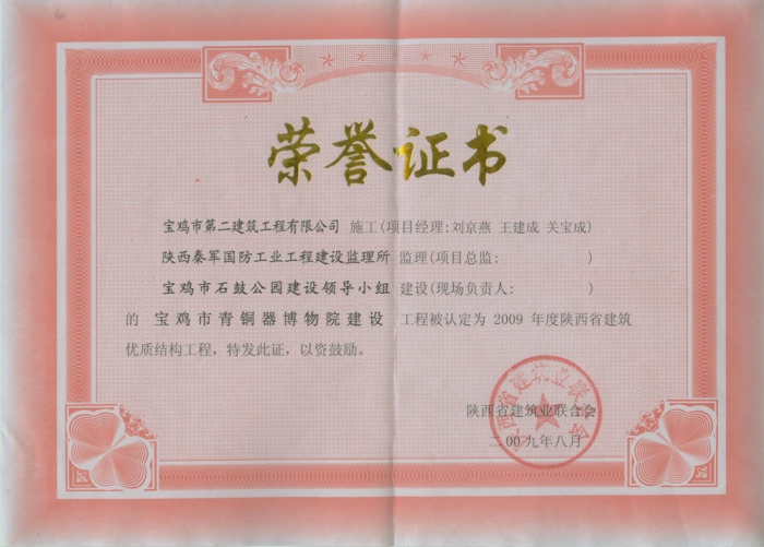 2009年省級(jí)優(yōu)質(zhì)結(jié)構(gòu)工程(青銅器)